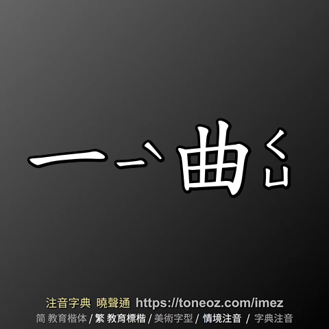 一曲,注音ㄧ ㄑㄩˇ,拼音yī qǔ,辭典解釋為:樂曲的一闋。《文選.嵇康.與山巨源絕交書》:「濁酒一盃,彈琴一曲,志願畢矣。」《三國演義》第八回:「允命貂蟬檀板低謳一曲。」