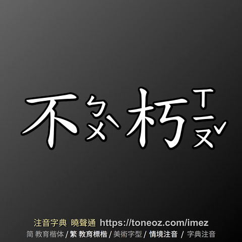 不朽,注音ㄅㄨˋ ㄒㄧㄡˇ,拼音bù xiǔ,辭典解釋為:不會磨滅,比喻永存。例:不朽名言、永垂不朽