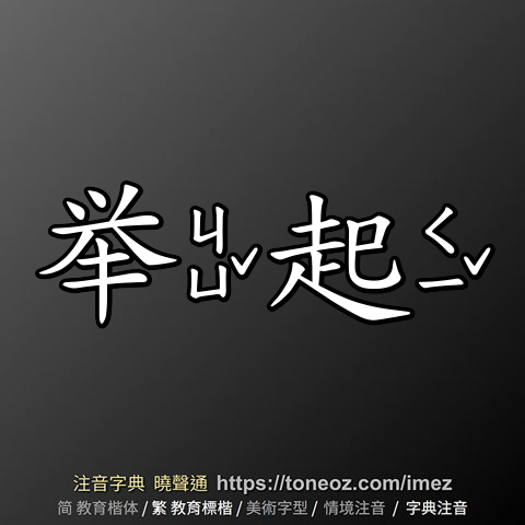 辭典解釋為:起,1.使身體由下往上坐立。例:起立、起身、早睡早起 2.開始。例:起訖、起筆、起頭 3.產生、發動。例:起疑、起兵、起作用 4.復甦、好轉。例:起死回生 5.提取。例:起贓、起貨、起出 6.擬定。例:起草、起稿 7.建築、建立。例:白手起家 8.量詞:(1) 計算分批的人的單位。相當於「群」。例:店裡來了兩起客人。 (2) 計算事件發生的單位。例:高速公路上發生了數起連環車禍。...