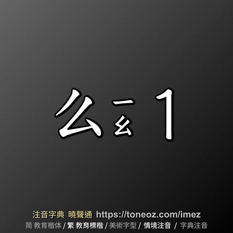 辭典解釋為:么1,英English: youngest, most junior, tiny, one (unambiguous spoken form when spelling out numbers, esp. on telephone or in military), one or ace on dice or dominoes, variant of 吆[yao1], to shout...