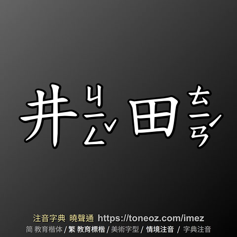 井田,注音ㄐㄧㄥˇ ㄊㄧㄢˊ,拼音jǐng tián,辭典解釋為:1.周代授田之法。以地一方里畫成九區,由八家各占百畝,稱為私田,中間百畝為公田,因形如井字,故稱為「井田」。 2.泛指田地。北齊.顏之推《顏氏家訓.歸心》:「豈令罄井田而起塔廟,窮編戶以為僧尼也?」