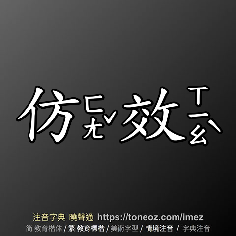 仿效,注音ㄈㄤˇ ㄒㄧㄠˋ,拼音fǎng xiào,辭典解釋為:依樣效法。例:他的善行值得我們仿效。