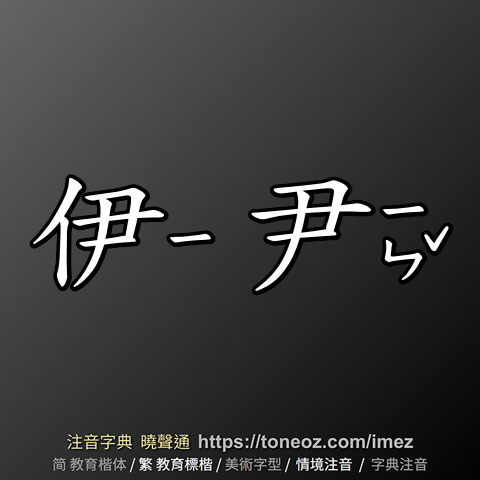 伊尹,注音ㄧ ㄧㄣˇ,拼音yī yǐn,辭典解釋為:人名。名摯,商初的賢相。相傳湯伐桀,滅夏,遂王天下。湯崩,其孫太甲無道,伊尹放諸桐宮,俟其悔過,再迎之復位。卒時,帝沃丁葬以天子之禮。