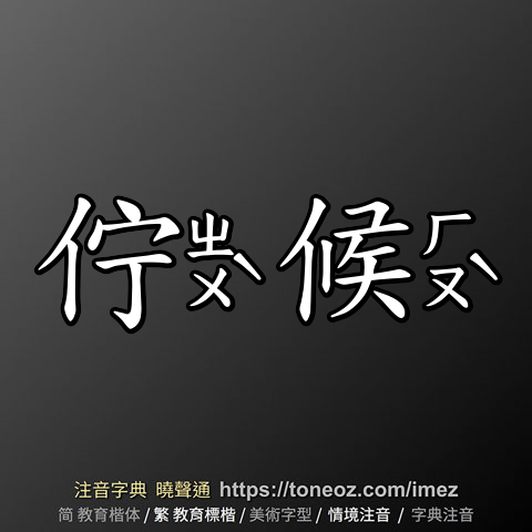 佇候,注音ㄓㄨˋ ㄏㄡˋ,拼音zhù hòu,辭典解釋為:站著等候。例:在戲院門口佇候良久,卻始終不見對方到來。