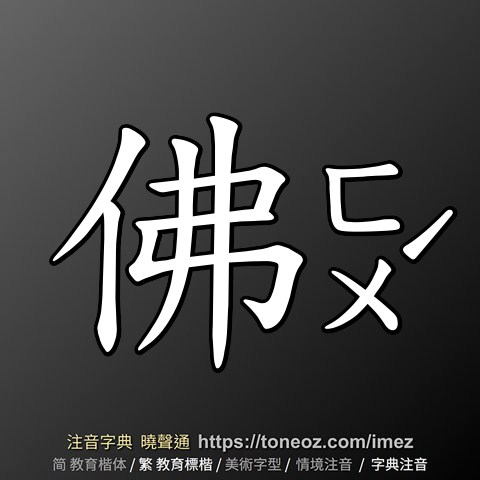 佛,注音ㄈㄨˊ,拼音fú,辭典解釋為:通「彿」。例:仿佛