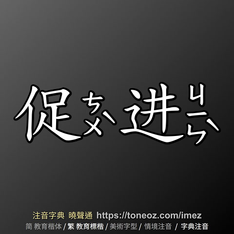 辭典解釋為:促,1.催、推動。例:促進、促使 2.緊迫、時間短暫。例:急促、匆促、短促 3.靠近。例:促膝談心...