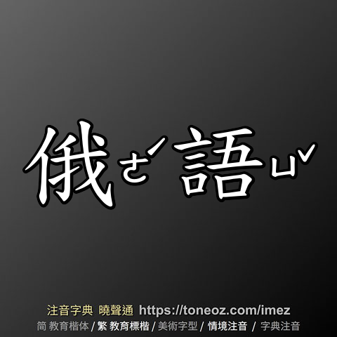 俄語,注音ㄜˊ ㄩˇ,拼音é yǔ,辭典解釋為:俄羅斯人的語言。屬印歐語系斯拉夫語族東斯拉夫語支。分大俄羅斯語、小俄羅斯語及白俄羅斯語。為前蘇聯各民族的共同交際語。文字採用基立爾字母,九世紀起有文獻。