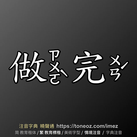 辭典解釋為:做完,英English: to finish, to complete the task...