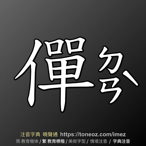 僤,注音ㄉㄢˋ,拼音dàn,辭典解釋為:[副] 盛、厚。《詩經.大雅.桑柔》:「我生不辰,逢天僤怒。」漢.毛亨.傳:「僤,厚也。」