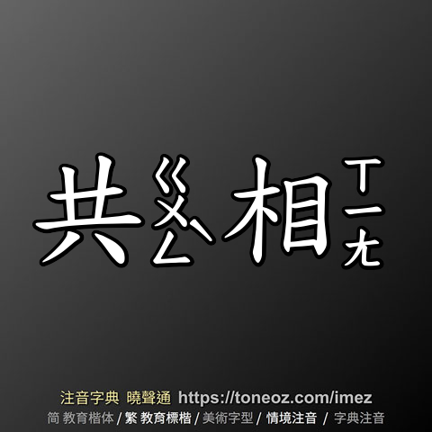 共相,注音ㄍㄨㄥˋ ㄒㄧㄤˋ,拼音gòng xiàng,辭典解釋為:物與物的共同特徵。