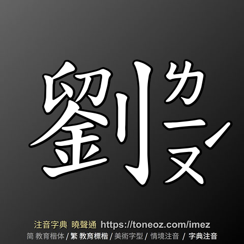劉,注音ㄌㄧㄡˊ,拼音liú,辭典解釋為:姓。