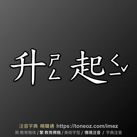辭典解釋為:升起,英English: to raise, to hoist, to rise...