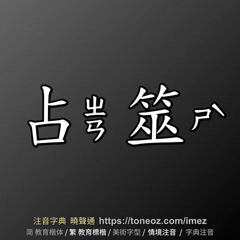 辭典解釋為:占,1.擁有、據有。例:霸占、攻占、侵占 2.口述文辭。例:口占...