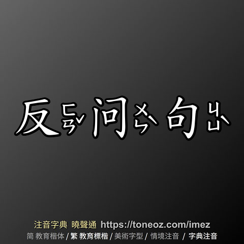辭典解釋為:反,1.翻轉、顛倒。例:反敗為勝、易如反掌 2.背向自己方向的,或具消極、否定、異常意義的。與「正」相對。例:反面、反義、反常  3.不贊成,持抗議立場的。例:反核、反汙染 4.回、還。例:反省、反求諸己 5.出於正常判斷之外的。例:反而、畫虎不成反類犬 6.翻案。例:平反...