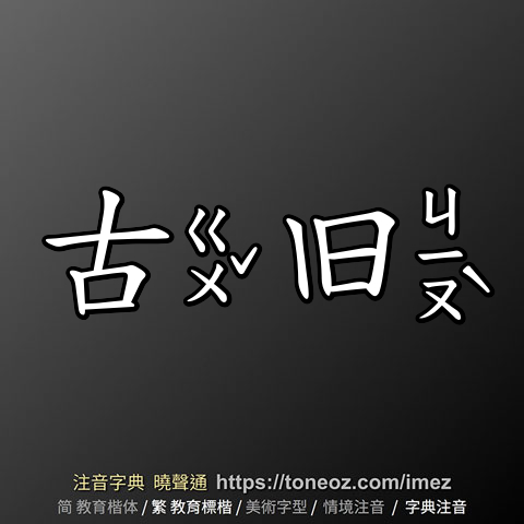 辭典解釋為:古,1.過去且久遠的時代、事物。與「今」相對。例:古今中外、貴古賤今、信而好古 2.過去的、舊的。例:古人、古事、古物 3.質樸。例:古樸、人心不古 4.古體詩。例:五古、七古 5.姓。...