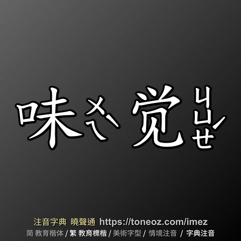 辭典解釋為:味,1.舌頭嚐東西所得到的感覺。例:口味、津津有味 2.鼻子聞東西所得到的感覺。例:香味、臭味 3.感受、旨趣、意義。例:趣味、禪味 4.量詞。計算食物或中藥的單位。例:菜五味、藥八味...