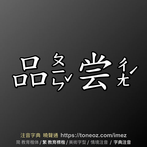 辭典解釋為:品,1.某一類東西的總稱。例:物品、食品、成品 2.事物的種類。例:花品、茶品 3.等級。例:上品、極品 4.人的德性。例:人品、品學兼優 5.評量、評斷好壞優劣。例:品詩、品文 6.細辨滋味。例:品酒、品嚐、品茗 7.吹奏樂器。例:品竹、品簫 8.古代官制中的階級。例:一品、官品 9.量詞。計算佛教經論篇章的單位。例:《大方廣佛華嚴經.阿僧衹品》...