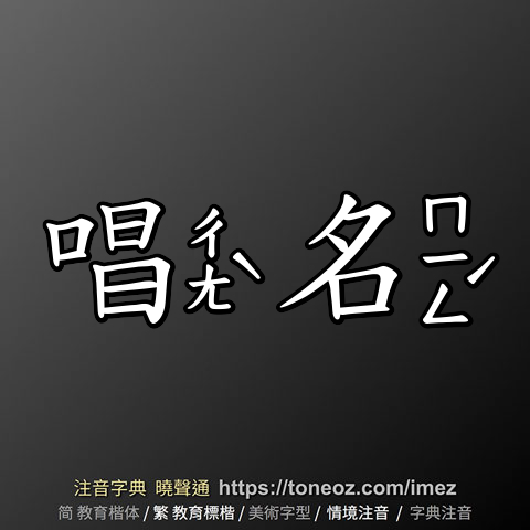 唱名,注音ㄔㄤˋ ㄇㄧㄥˊ,拼音chàng míng,辭典解釋為:高聲點名。例:大會司儀正在唱名,宣布得獎名單。
