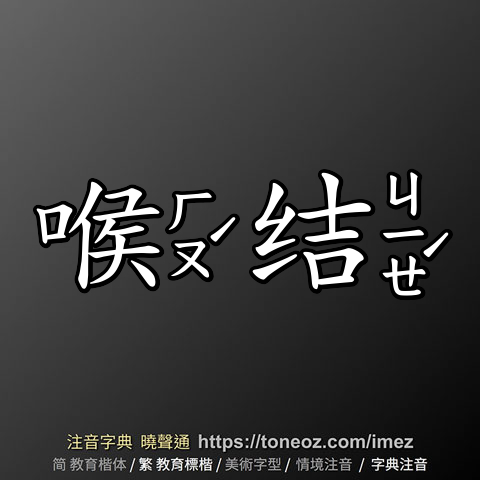 辭典解釋為:喉,指咽頭以下,氣管以上的部分。由甲狀軟骨、會厭軟骨、環狀軟骨等構成。為呼吸器官的一部分,內有聲帶,具發音功能。 △喉頭、喉嚨 ...