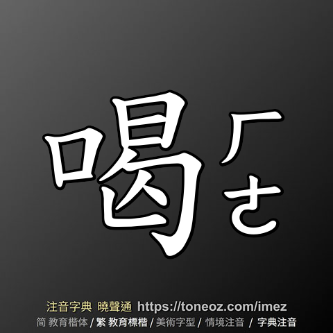喝,注音ㄏㄜ,拼音hē,辭典解釋為:飲用液體或流質食物。例:喝酒、喝水、喝稀飯