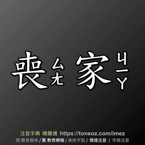喪家,注音ㄙㄤ ㄐㄧㄚ,拼音sāng jiā,辭典解釋為:有喪事的人家。例:喪家的大門如果貼上「慈制」兩字,則表示母親去世。