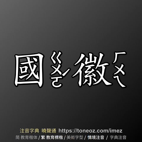 國徽,注音ㄍㄨㄛˊ ㄏㄨㄟ,拼音guó huī,辭典解釋為:由國家制定,用以代表一國的徽誌。如我國以青天白日為國徽。例:中華民國的護照印有青天白日的國徽。