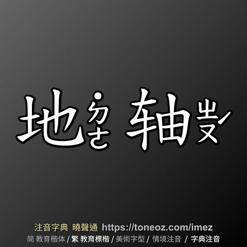 辭典解釋為:地,1.人類萬物棲息生長的處所。與「天」相對。例:大地、天地 2.指地球。例:地心 3.田地、土地。例:耕地、荒地、地盡其利 4.場所。例:發源地、目的地、根據地 5.區域。例:本地、殖民地、臺灣各地 6.地位、立場。例:易地而處、設身處地 7.本性、心思、意志的領域。例:見地、心地 8.本質、底子。例:質地 9.助詞。用於副詞語尾。例:忽地、驀地...