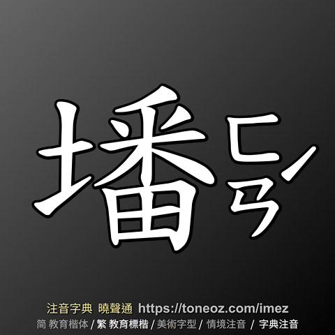 墦,注音ㄈㄢˊ,拼音fán,辭典解釋為:墳墓。例:清朝文人袁枚的好友沈凡民一生無子嗣,過世後,袁枚墦祭三十年不輟,一時傳為友誼的佳話。