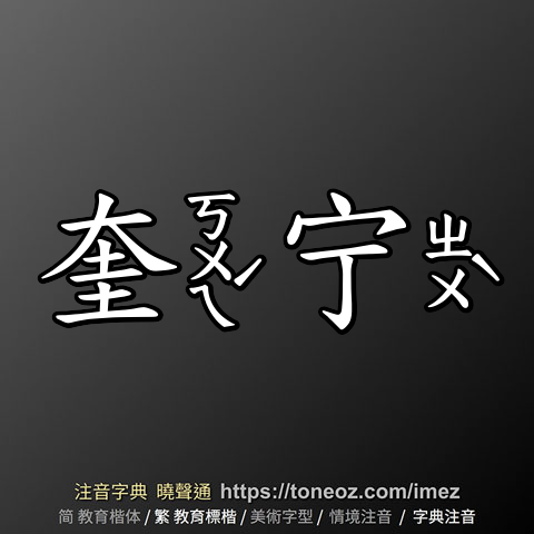 辭典解釋為:奎,1.二十八星宿之一。西方白虎七宿的第一宿,即文曲星,古人認為主司人間的文運。例: 奎宿、奎星 2.關於文事的。例:奎運昌盛...