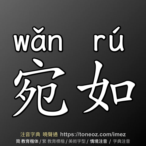 宛如,注音ㄨㄢˇ ㄖㄨˊ,拼音wǎn rú,辭典解釋為:彷彿。例:陣陣寒風吹在身上,宛如針刺刀割。