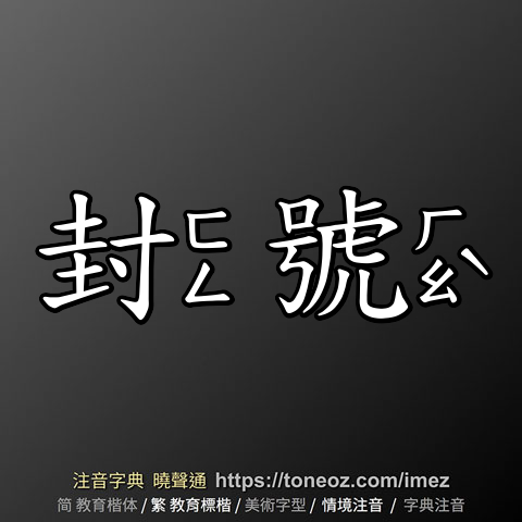 封號,注音ㄈㄥ ㄏㄠˋ,拼音fēng hào,辭典解釋為:古代帝王封賜的爵號。後亦指人們所給予的稱號。例:他的食量很大,大夥兒幫他取了個大胃王的封號。