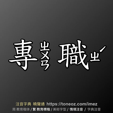 專職,注音ㄓㄨㄢ ㄓˊ,拼音zhuān zhí,辭典解釋為:專門擔任的職務。例:他的專職是法官,另外還在大學的法律系兼課。