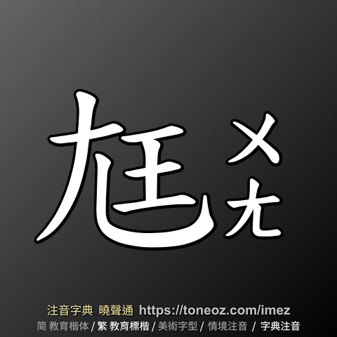 尪,注音ㄨㄤ,拼音wāng,辭典解釋為:1.一種骨骼彎曲的疾病。例:尪病 2.瘦弱。例:尪弱、尪老