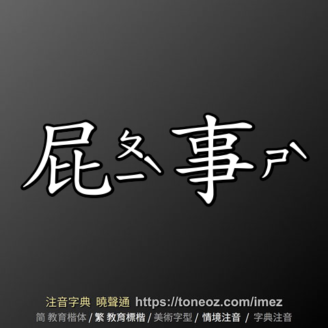 辭典解釋為:屁事,英English: (vulgar) trifling matter, mere trifle, goddamn thing, goddamn business...