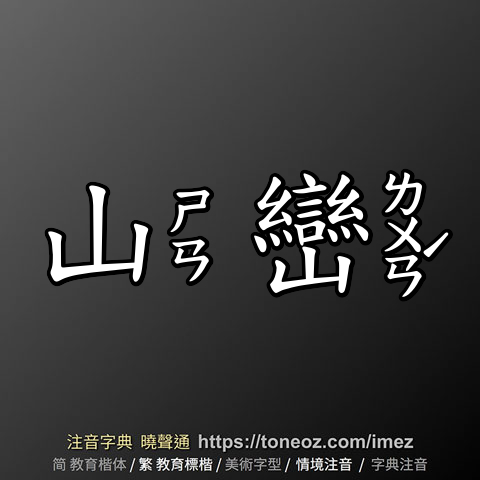 山巒,注音ㄕㄢ ㄌㄨㄢˊ,拼音shān luán,辭典解釋為:連綿的山。例:這一帶山巒起伏,氣勢雄偉。
