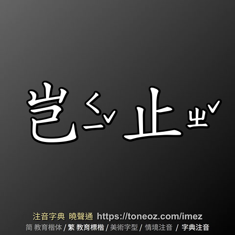 辭典解釋為:止,1.停住、不動。例:停止、學無止境、適可而止 2.不准、阻擋。例:禁止 3.態度、行為。例:舉止、行止 4.僅、只。例:不止一次...