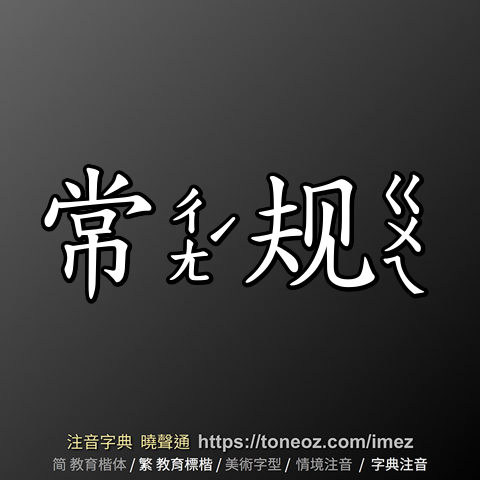 辭典解釋為:常,1.恆久不變的規律。例:倫常、三綱五常 2.普通的、一般的。例:平常、常識、常情 3.長久固定不變的、規律的、定期的。例:常規、常駐、常會 4.時時、一次又一次,表示頻繁的意思。例:時常、老生常談 5.姓。...