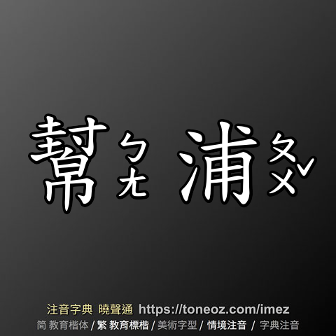 幫浦,注音ㄅㄤ ㄆㄨˇ,拼音bāng pǔ,辭典解釋為:能將液體吸入或排出的機械,通常用來抽取低處的水。如抽水機。§英pump例:地下室淹了水,消防隊正在使用幫浦抽水。 △唧筒