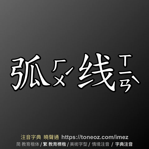辭典解釋為:弧,1.數學上指圓周的任意一段。例:圓弧  2.彎曲、有曲線。例:弧度、弧形 3.弧形符號。例:括弧...