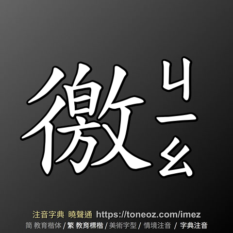 徼,注音ㄐㄧㄠˋ,拼音jiào,辭典解釋為:巡察。例:徼循