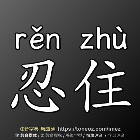 辭典解釋為:忍,1.耐、包容。例:容忍、忍受、忍辱負重 2.強抑、克制。例:忍淚、動心忍性、忍俊不禁 3.狠心、不仁慈。例:殘忍、貪忍...