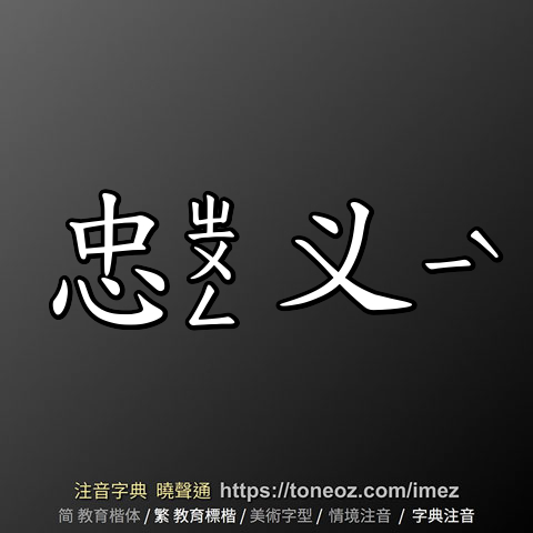 辭典解釋為:忠,1.盡心誠意待人處事的美德。例:盡忠、效忠 2.盡心做事。例:忠君愛國...