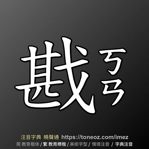 戡,注音ㄎㄢ,拼音kān,辭典解釋為:平定。例:戡亂、戡平