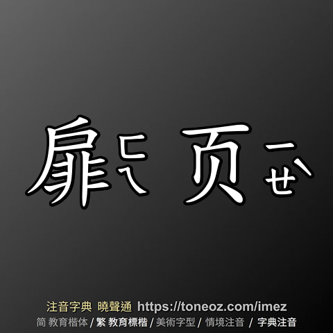 辭典解釋為:扉,1.門扇。例:門扉、柴扉 2.比喻像門的東西。例:心扉 3.置於最前面的。例:扉頁...