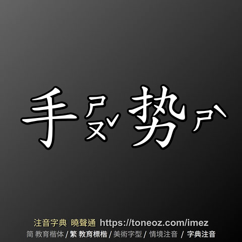 辭典解釋為:手,1.人體的上肢。例:右手、手腦並用 2.擅長某種技藝的人。例:國手、選手、神槍手 3.專門從事某種工作的人。例:助手、幫手、水手 4.處理事情的方法。例:眼高手低、心狠手辣 5.親自做的。例:手諭、手書、手抄 6.與手有關的。例:手杖、手套、手榴彈 7.量詞。計算技能、本領的單位。例:露兩手...