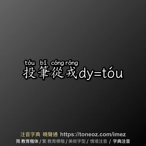 投筆從戎dy=tóu - 教育字典 快速核校注音 曉聲通