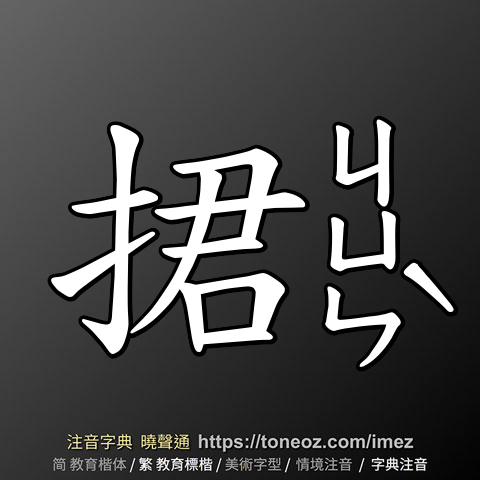 捃,注音ㄐㄩㄣˋ,拼音jùn,辭典解釋為:[動] 拾取、採集。漢.劉向《說苑.卷一四.至公》:「使王子革、王子靈共捃菜。」唐.李延壽〈上南北史表〉:「除其冗長,捃其菁華。」