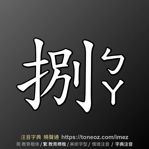 捌,注音ㄅㄚ,拼音bā,辭典解釋為:「八」的大寫。