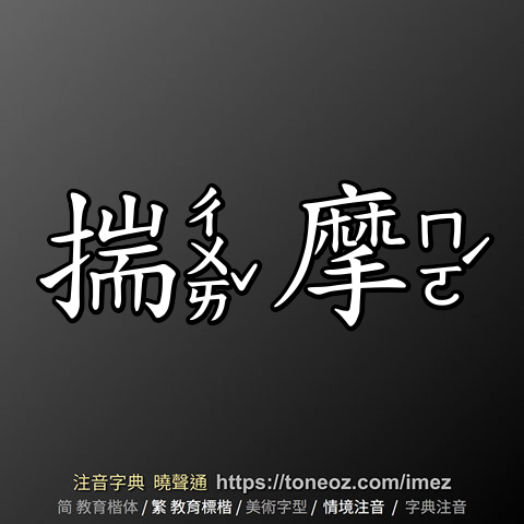 揣摩,注音ㄔㄨㄞˇ ㄇㄛˊ,拼音chuǎi mó,辭典解釋為:仔細分析思索以探求其中意義。例:我仔細研讀劇本,用心揣摩角色的性格,希望把這齣戲演得淋漓盡致。