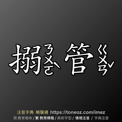 搦管,注音ㄋㄨㄛˋ ㄍㄨㄢˇ,拼音nuò guǎn,辭典解釋為:執筆、握筆。唐.白居易〈新樂府.紫毫筆〉:「搦管趨入黃金闕,抽毫立在白玉除。」